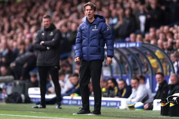 Vedúci inštruktora Tottenham Hotspur hovorí s tlačovými reportérmi, ktorí sú v súlade s úspechom v Leeds United v Premier Organization v sobotu v polovici dňa