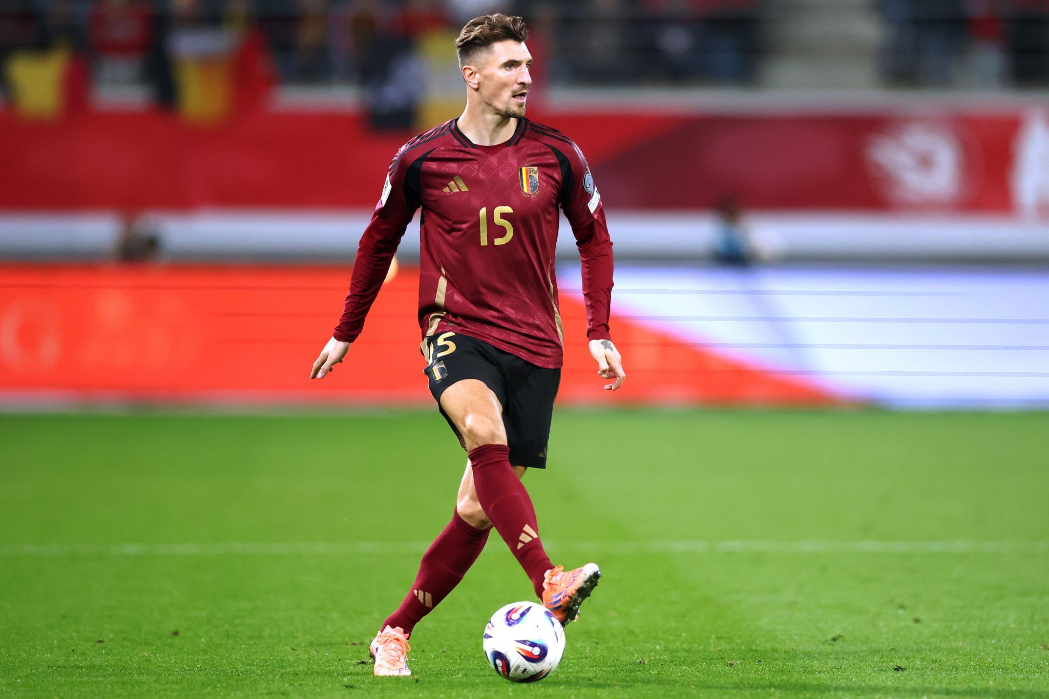 Thomas Meunier z Belgicka počas kvalifikácie FIFA Globe Mug 2026. (Obrázok od Deana Mouhtaropoulosa/Getty Images)
