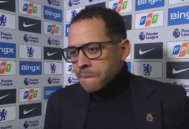 Počas svojho pozápasového rozhovoru s reportérkou TNT Sports Oliviou Buzaglo (vyššie) bol Rosenior ešte viac nahnevaný, keď sa dozvedel, že VAR považoval incident za „neúmyselnú hádzanú“.