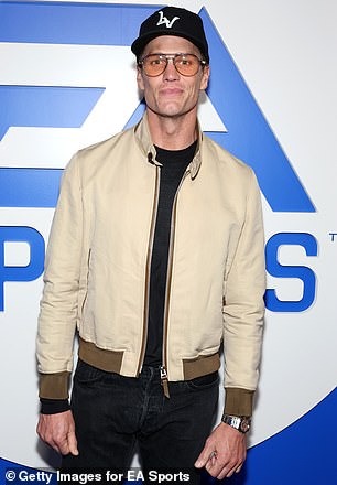 Legendárny rozohrávač NFL (47) bol natočený ako tápajúci influencer Earle (25) na párty pred minulotýždňovým Super Bowlom v Santa Clare v Kalifornii.