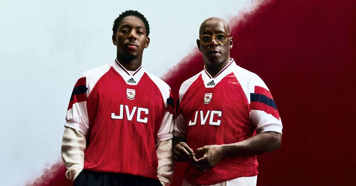 Myles Lewis-Skelly a Ian Wright v drese domáceho Arsenalu 92/94.