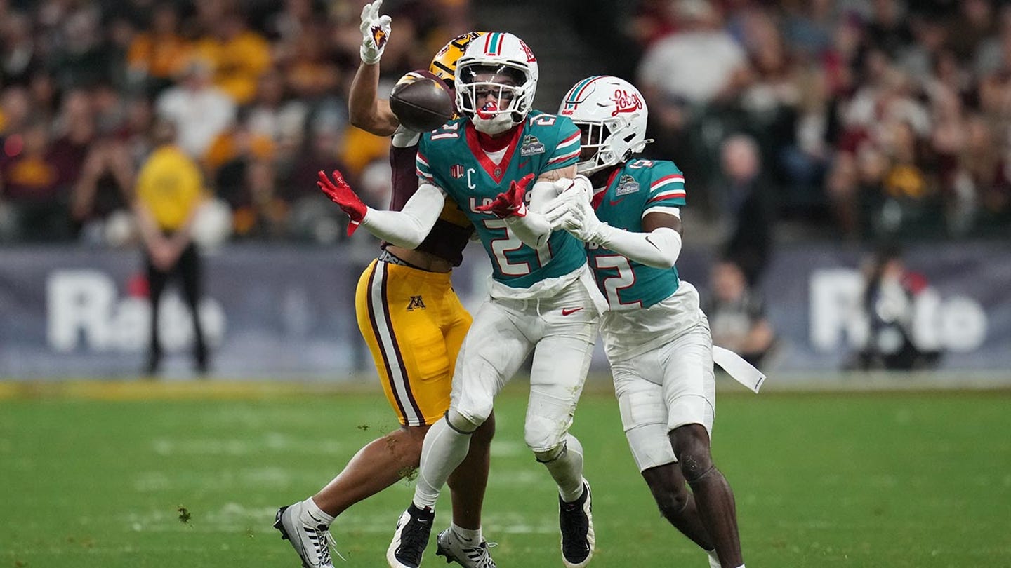 Bezpečnosť v Novom Mexiku Austin Brawley zrazil loptu od Minnesoty, Jalena Smitha, v prvom polčase univerzitného futbalového zápasu Rate Bowl NCAA v piatok 26. decembra 2025 vo Phoenixe. (AP Photo/Rick Scooteri)