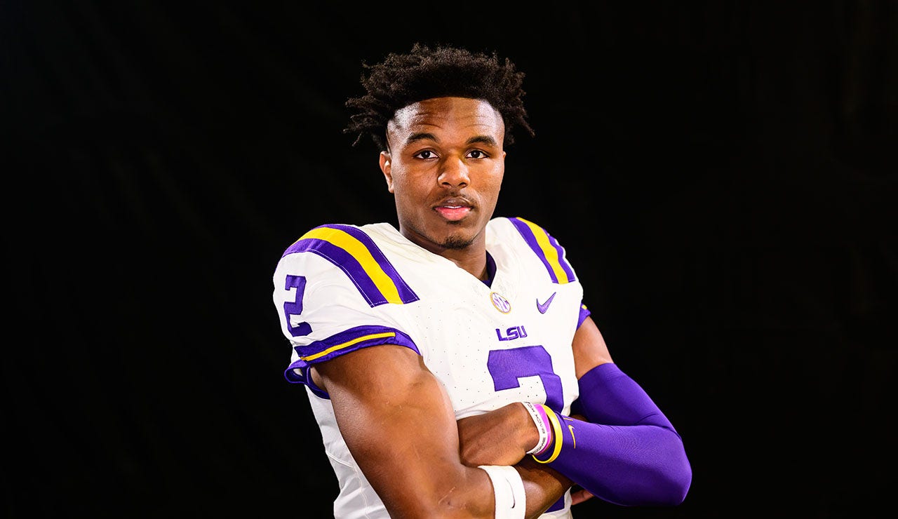Kyren Lacy of the LSU Tigers Potohy pre obrázok počas médií, ktorý sa konal v LSU Indoor Method Center 17. júna 2024, v Baton Rouge v Louisiane. (LSU Atletics/University Fotografie pomocou Getty Images)