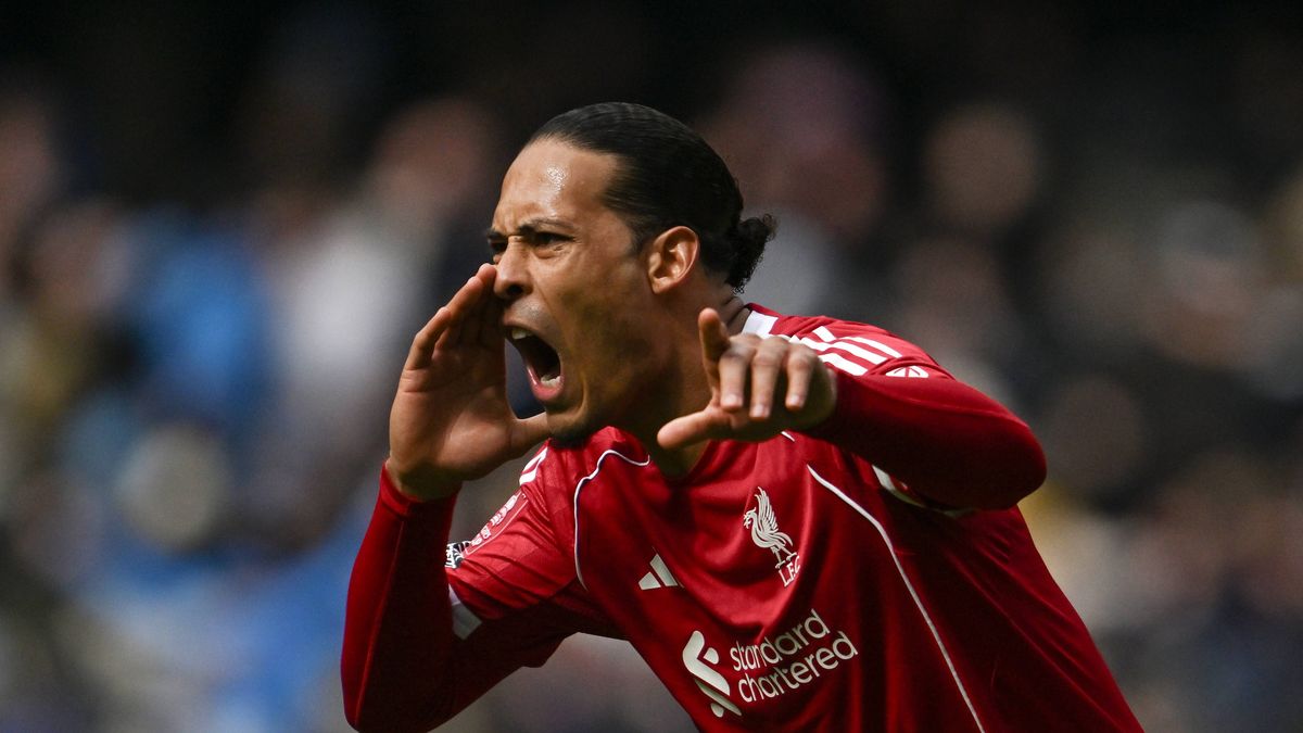MANCHESTER, ANGLICKO – 4. APRÍLA: (VYCHÁDZA SLNKO, VONKA SLNKO) Virgil van Dijk z Liverpoolu dáva pokyny tímu počas štvrťfinále Emirates FA Cupu medzi Manchestrom City a Liverpoolom na Etihad Stadium 4. apríla 2026 v Manchestri v Anglicku. (Foto Liverpool FC/Liverpool FC cez Getty Images)