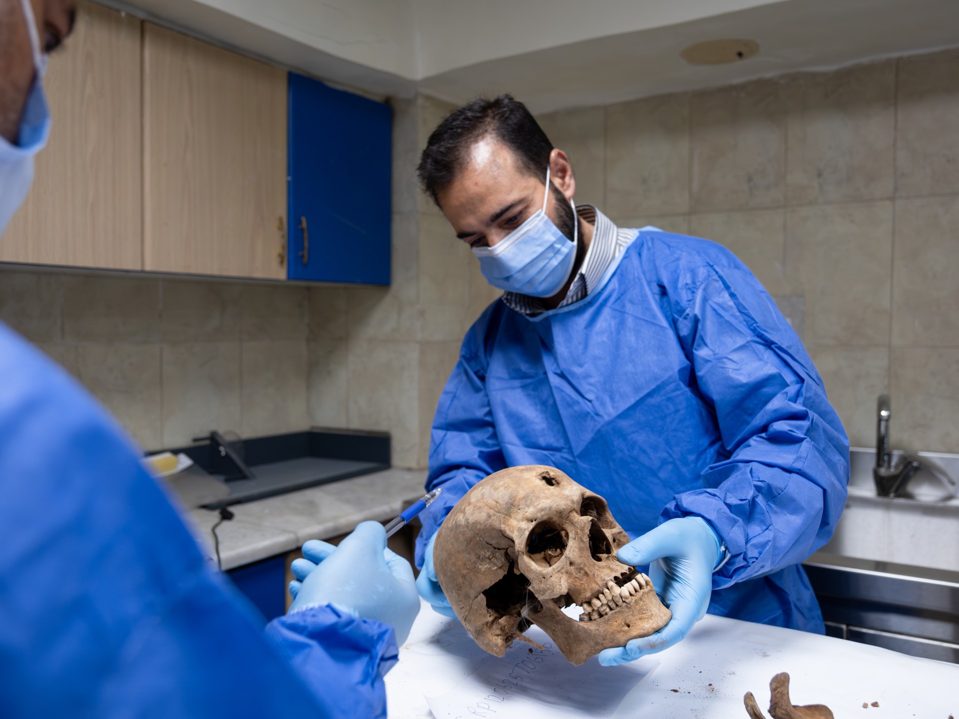 Dr Anas Hourani je forenzný odontológ – čo znamená, že študuje zuby, aby pomohol identifikovať pozostatky osoby (Harriet Tatham/Al Jazeera)