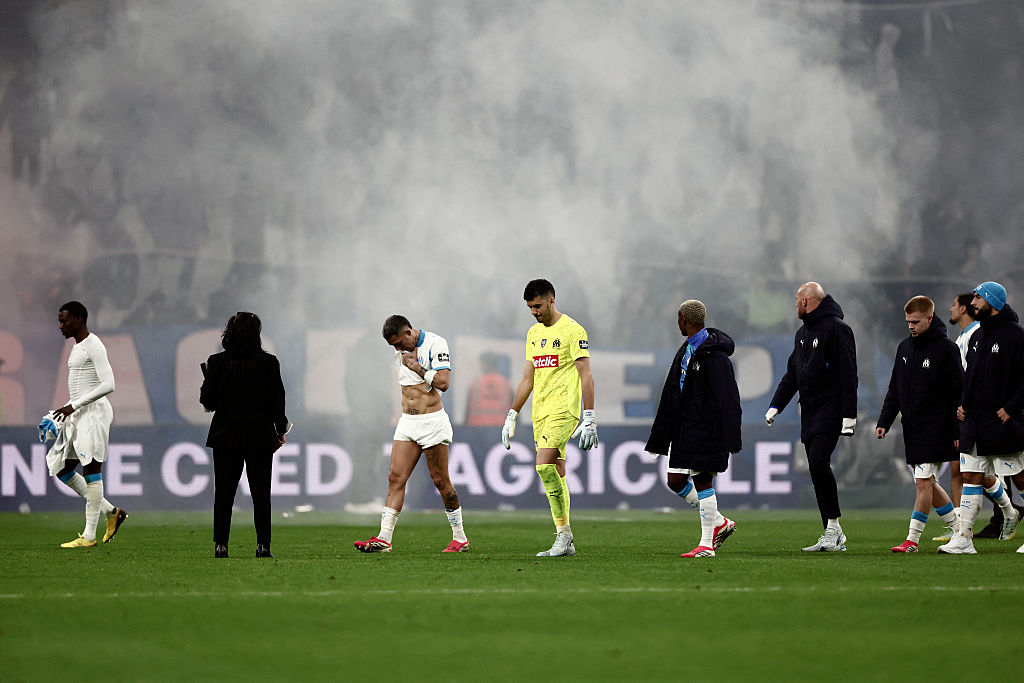 Fanúšikovia Marseille odpaľovali svetlice na ihrisko priamo na hráčov. Profesionáli sa preto vrátili späť do šatní. Podľa všetkého sa nikto nezranil.