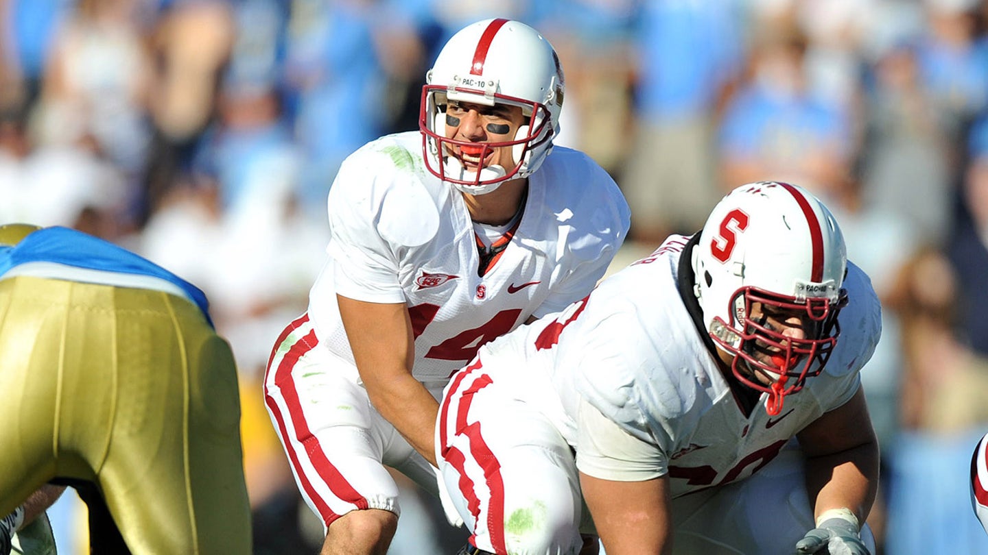 Rozohrávač Stanford Cardinal Tavita Pritchard (14) si oddýchol počas prehry 23:20 s UCLA Bruins v Rose Bowl v Pasadene v Kalifornii 18. októbra 2008. (Kirby Lee/Image of Sport-USA TODAY Sports)