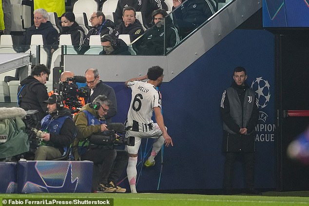 Lloyd Kelly si dal svoju frustráciu na hráčskom tuneli po tom, čo dostal kontroverznú červenú kartu pri porážke Juventusu od Galatasaray