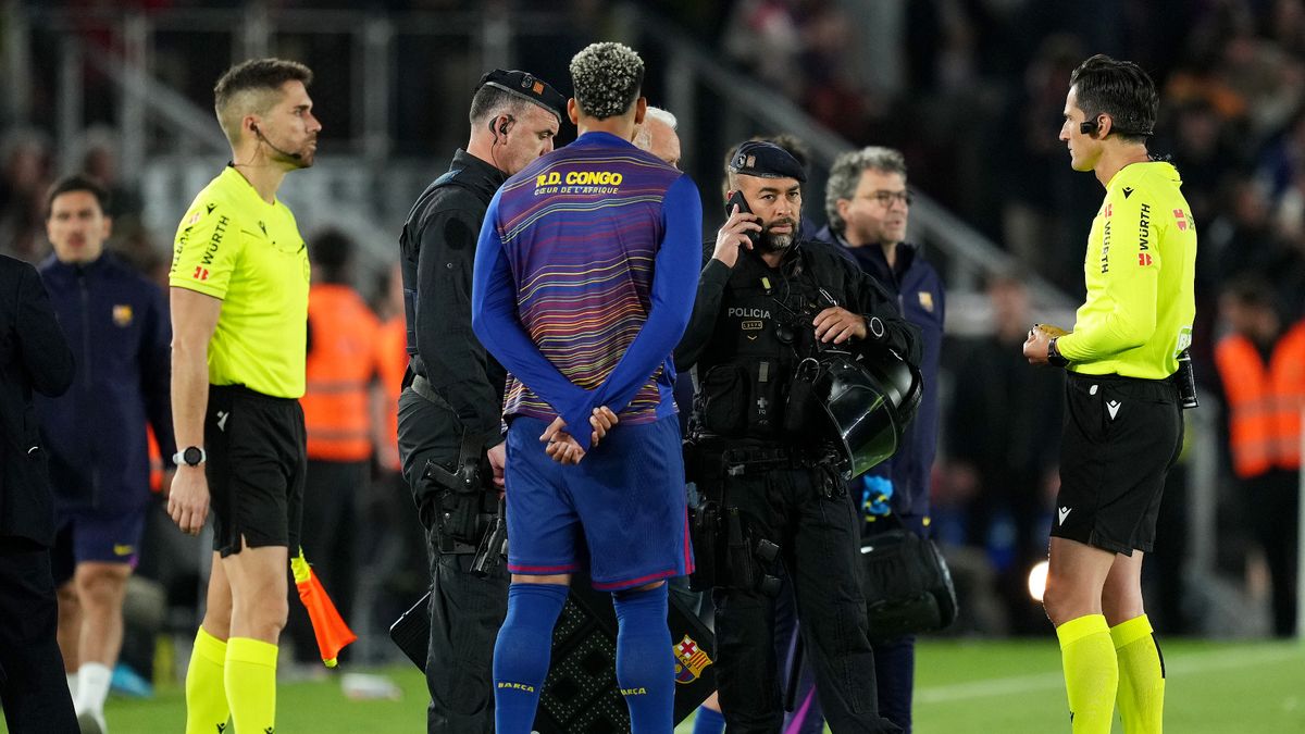 Barcelona nastupovala proti Celte Vigo v zápase La Ligy na Nou Camp, keď funkcionári prinútili obe skupiny hráčov odísť z ihriska do znepokojivých scén v dave.