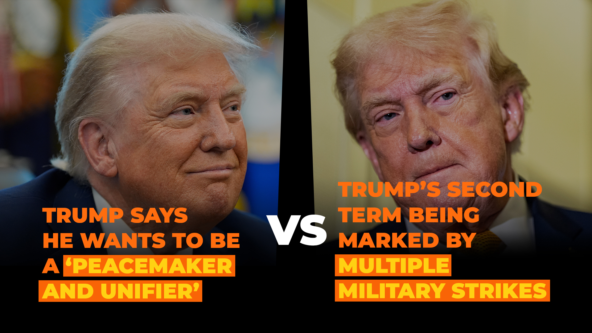 Porovnávame a porovnávame Trumpovu snahu o odkaz mierotvorcov s vojenskými útokmi, ktoré začal počas jeho druhého funkčného obdobia.