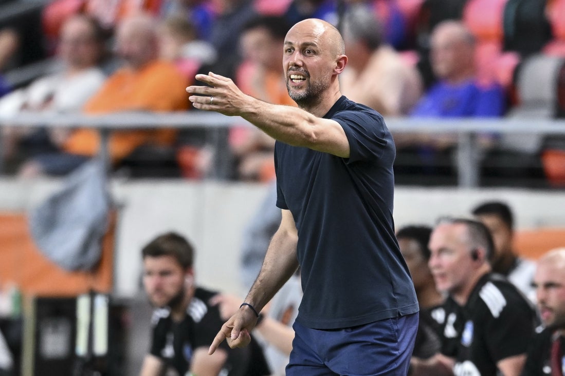 14. júna 2025; Houston, Texas, Spojené štáty americké; Hlavný tréner CF Montreal Marco Donadel reaguje počas prvých päťdesiatich percent proti Houston Eager Beaver v Covering Power Arena. Povinné kreditné skóre: Maria Lysaker-Imagn Images