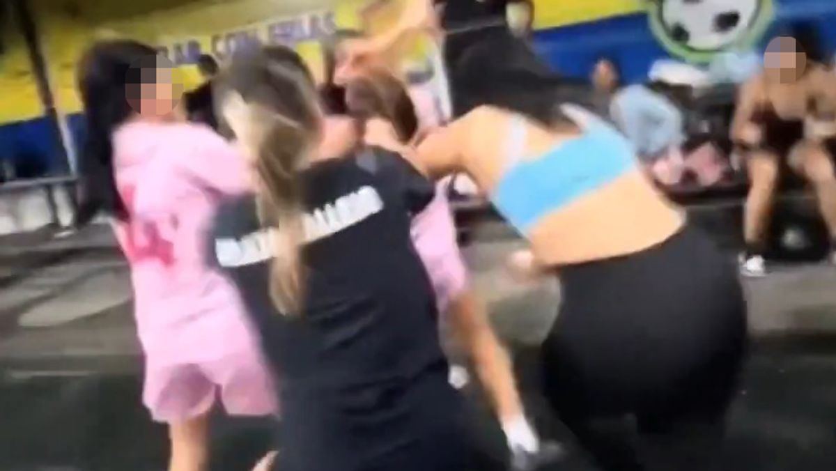 Počas ženského futbalového zápasu sa strhla bitka, keď niekoľko hráčok zjavne trhalo vlasy a hádzalo päsťami.