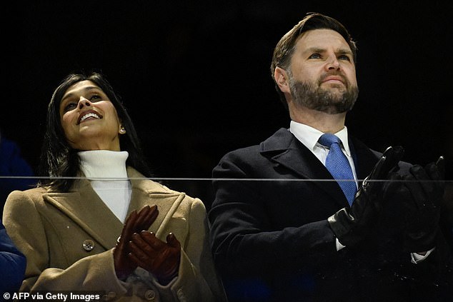 Americký viceprezident JD Vance, ktorý bol na ceremoniáli vypískaný, a druhá dáma Usha Vance