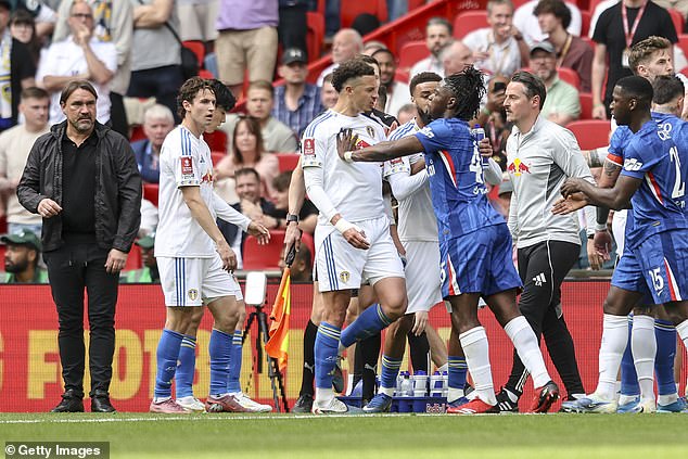Muž z Leedsu Ethan Ampadu sa pokúsil prerušiť rozhovor medzi McFarlaneom a Tosinom Adarabioyom, kým ho stredopoliar Blues Romeo Lavia násilne neodstrčil.