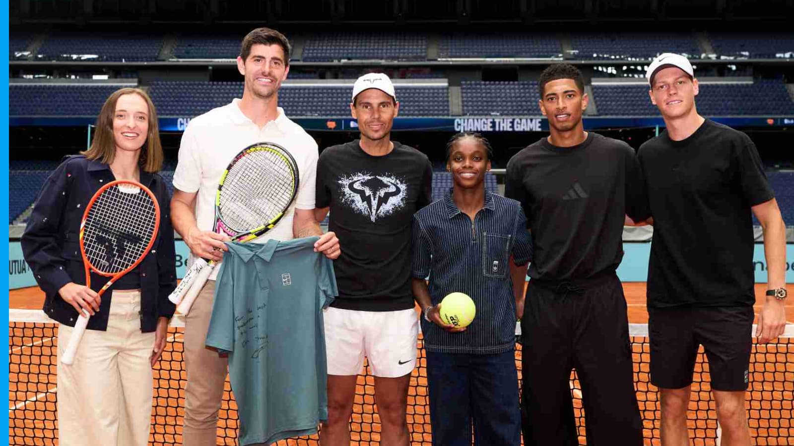 K španielskej tenisovej ikone Nadalovi sa pri odhalení kurtu pripojila svetová hriešnica č. 1 a štvornásobný šampión French Open Iga Swiatek, pričom hviezdy Realu Madrid Thibaut Courtois a Jude Bellingham tiež ukázali svoje tenisové umenie sledujúcim médiám a hodnostárom.